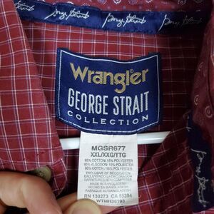 Wrangler George Strait Shirt Mens 2XL Red Check Long Sleeve Western Button Up