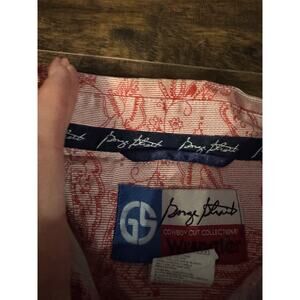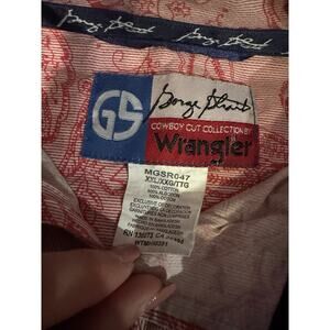 In good condition! The Wrangler George Strait Shirt for men in size 2XL features a classic button-up design with a collared neckline, perfect for a casual occasion. Made from a comfortable cotton blend fabric with a paisley pattern, this shirt is suitable for all seasons. With a chest size of 48 inches, this multicolor shirt offers a regular fit and is machine washable for easy care. The George Strait theme adds a colorful touch to this woven shirt, making it a versatile addition to any man's wardrobe.