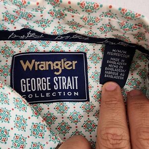 Wrangler George Strait Size Medium Men's Short Sleeve Button-up Collar White/Green Western Cowboy Floral Print O2