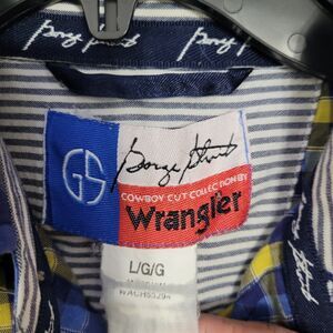 Wrangler George Strait Western Shirt Men’s L Blue Plaid Button Front Long Sleeve