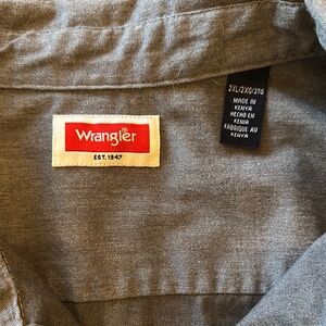Stylish Wrangler button down shirt. Features long sleeves and chest pockets. Perfect for casual wear.