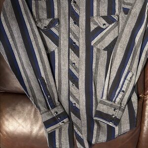 Experience the perfect blend of style and comfort with this Wrangler casual button down shirt. Crafted in a classic gray and blue color palette, it offers a versatile look suitable for any casual occasion. The shirt's woven fabric ensures a comfortable fit, making it a staple in any wardrobe.