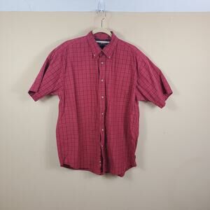 Gently used. Red grid print. Size large. Short sleeve button up shirt. Wrinkle resistance.