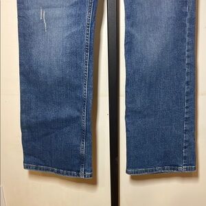 Timeless high rise bootcut by Wrangler. Rich denim blue. Ideal for everyday style. Waist is 15”, rise is 10”, and inseam is 28.5”