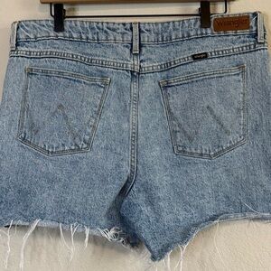 Wrangler High Rise Distressed Mom Dad Roll Shorts Denim Blue Jean Shorts Size 14