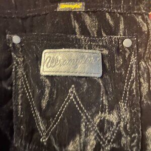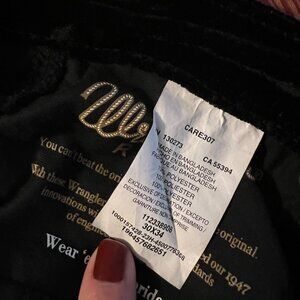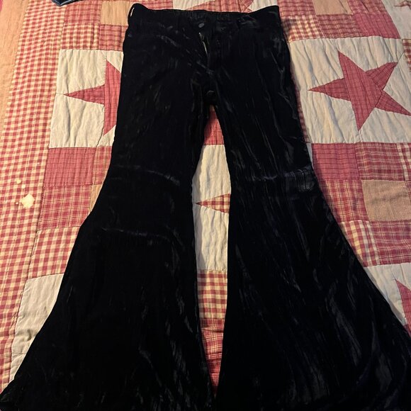 Black velvet Trumpet Flare super rare bell bottoms Wrangler with back leather tag. Size 28x34