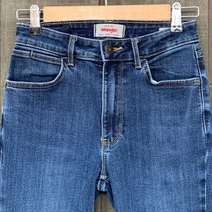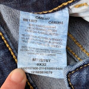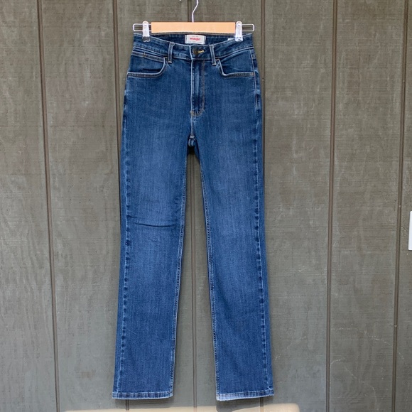 In excellent condition, they don’t look like they were ever worn. Medium dark blue denim with good stretch