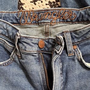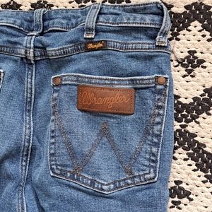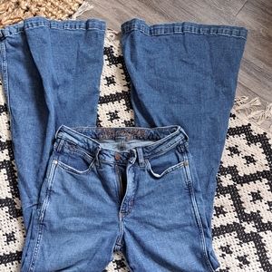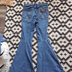 Wrangler bell bottoms, my favorite style of jeans ever, just to short. Great condition bought new, like new. No picks or stains. Size is accurate, super comfortable and good with everything! 27x 34. Best bellbottoms I can find, wide flare! If you have any questions just ask!