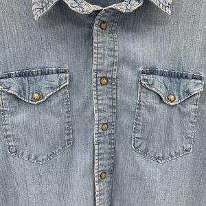 Wrangler Indigo Mens Large Shirt Pearl Snap Blue Denim Western Cowboy Rodeo Work