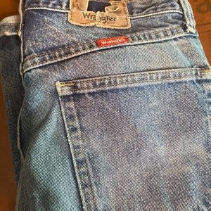 Stylish indigo jeans by Wrangler. Comfortable regular fit. 33x33, High-quality denim, some wear