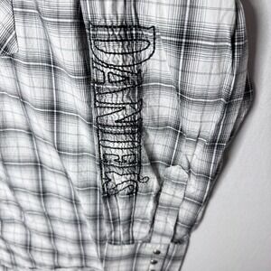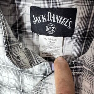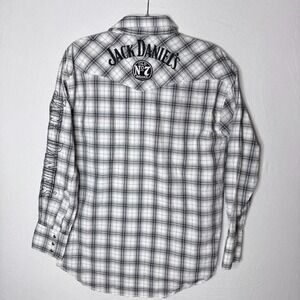 Wrangler Jack Daniels Shirt Mens M Gray Plaid Embroidered Bar Whiskey Pearl Snap