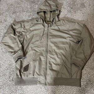 Wrangler Jacket Mens 2XL Dark Khaki Hooded Ripstop Zip YKK Workwear 3W177DK