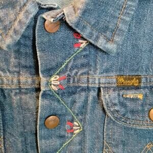 Wrangler Jean Jacket Unique Embroidery & Bob Dylan Patch Womens Size Large