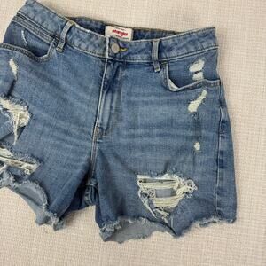 Wrangler Jean Shorts Womens 6 Denim 4" Frayed Destroyed Light Blue Casual