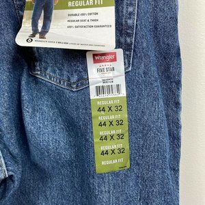 Wrangler Jeans 44 x 32 Regular Fit Medium Dark Wash Denim Straight Leg Mens New