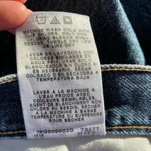Medium-dark wash blue denim. 5 pocket. Button, zip closure. 100% cotton. 13.5 inch rise.