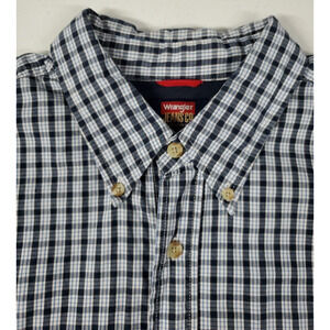 Wrangler Jeans Co Shirt Mens Large Button Down Blue White Plaid Cool Cotton