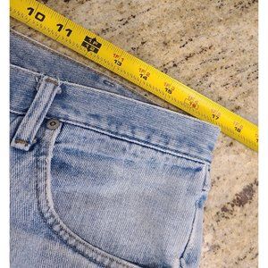Distressed around the edges particularly at the hem. Hole on the leg. Signs of use and wash. Jeans are sealed upon completion of photos