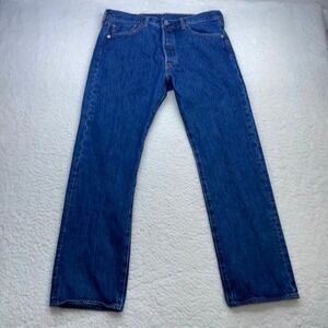 Classic denim jeans offering a timeless appeal for the modern wardrobe. These jeans feature a traditional five-pocket design, a sturdy button-fly closure, and a comfortable regular fit. The dark blue wash offers versatility for both casual and slightly dressier occasions. They're detailed with signature stitching on the back pockets, reinforcing the brand's heritage.