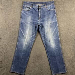Wrangler Jeans Mens 36x34 Blue Texas Stretch Straight Fit Medium Wash Denim Fade