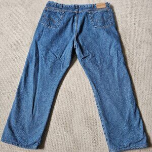 Wrangler Jeans Mens 44X30 Rugged Wear Red Fleece Lined Workwear Blue Denim