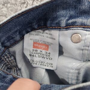 Wrangler Jeans Mens Size 38 x 34 Light Wash Carpenter Work Wear Cotton Denim
