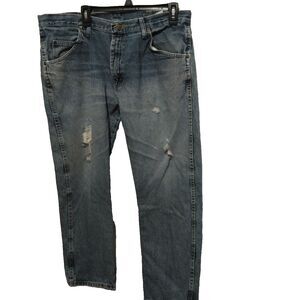 Wrangler Jeans Size 38x29 Reg Fit Straight Leg Distressed Mens Jeans