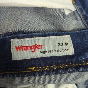 Wrangler Jeans Women's 32M Blue High Rise Bold Boot Western Cowgirl Rodeo Light spot on back of right leg as shown in photos Offers welcome! Please see measurements in listing photos to confirm fit