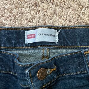 Selling as bundle. Two pair of wrangler jeans size 16 husky. Dark wash is bootcut style. Medium wash is straight leg style. Both in excellent condition.