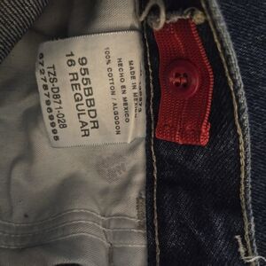 Timeless and durable Wrangler jeans, style 955BBDR, in a size 16 Regular. Made in Mexico from 100% cotton for comfort and durability. Classic straight-leg cut that pairs perfectly with boots, sneakers, or casual wear.