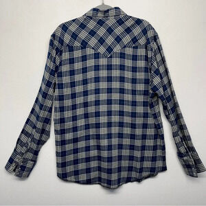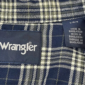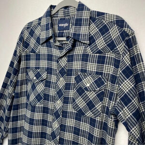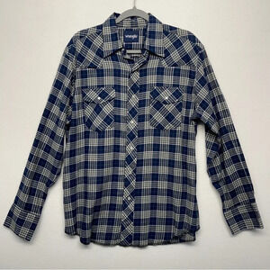Wrangler L Blue Plaid Check Pearl Snap Western Shirt