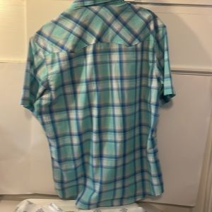 Wrangler large button down short sleeve shirt with pearl buttons. This preowned but new shirt has no holes or tears also no stains and comes from smoke-free environment.