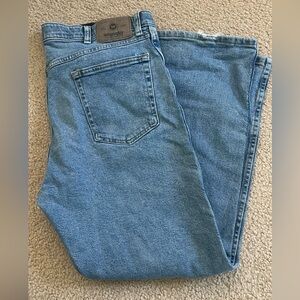 Stylish light blue jeans by Wrangler. Straight fit for comfort. Ideal for everyday wear.