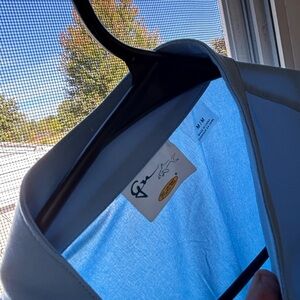 Light blue shirt with zip-up front. Ideal for casual outings.