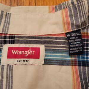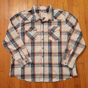 Wrangler Long Sleeve Plaid Blue Red Shirt 3XL Cotton Button Down Western Rodeo B