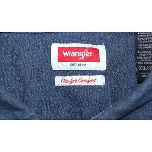 Wrangler Men's Medium Blue Denim 3XL Long Sleeve Button Up Shirt. Pre-owned in good condition.