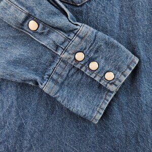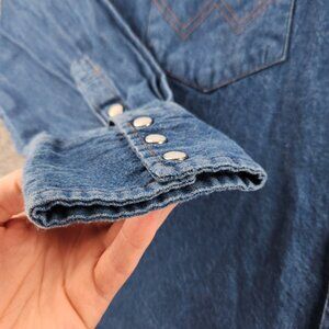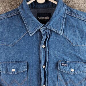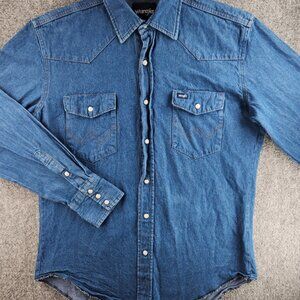 Wrangler Medium Denim Pearl Snap Up Shirt Long Sleeve Blue Western Pockets Adult