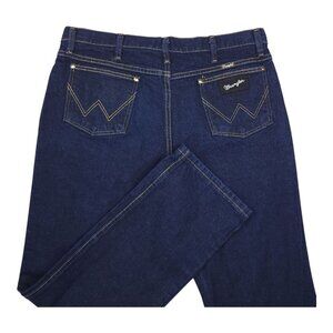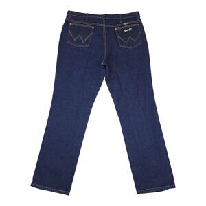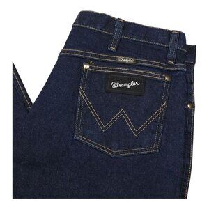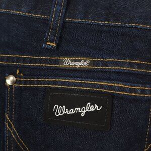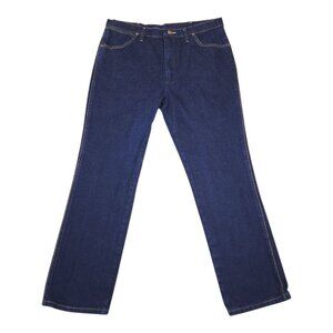 Wrangler Men 36x32 Straight Leg Dark Wash Denim Jeans Black Label Silver Writing
