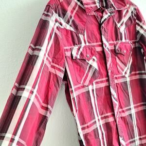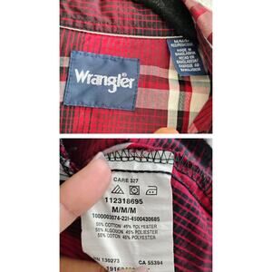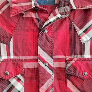 Wrangler Men Medium Red Black Plaid Pearl Snap Button Front Long Sleeve Shirt