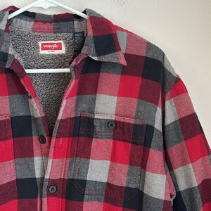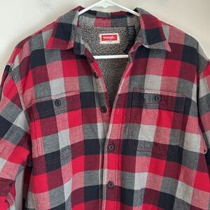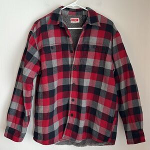 Wrangler Men Red gray Plaid Shirt jacket Shacket fleece lined quilted flannel M