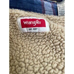 Wrangler Men Sherpa Lined Plaid Shirt Jacket S Cotton Polyester Blue Red Vintage