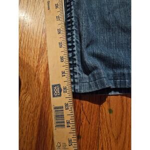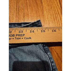 These Wrangler men’s 20X Cowboy Cut straight leg jeans are made from sturdy denim in a dark gray/blue wash. They feature a classic 5-pocket design with zip fly and button closure, a leather Wrangler 20X patch at the back and Y-logo patch, and are pre-owned in good condition. Approximate size: 30” waist (15” laid flat) and 32” inseam, with a 10.5” rise and 8” leg opening. There is natural fading and wear consistent with a worn pair of jeans. Great for western wear, cowboy rodeo, or everyday casual. Please see photos for measurements and details. SKU D008.