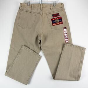 Wrangler Men's 20X Jeans 5-Pocket Tan Cotton 35x34 Relaxed Straight Leg New Flaw