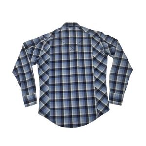 Wrangler Men's 20X Western Shirt Blue Plaid Pearl Snap Size M Contrast Stitching