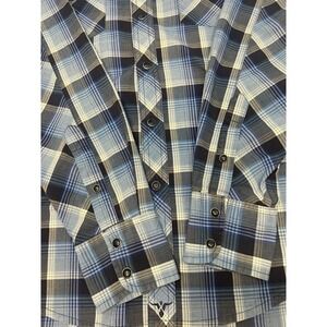 Wrangler 20X western men’s shirt blue plaid pearl snap contrast stitching