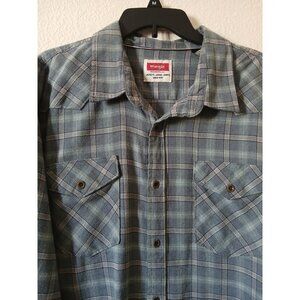 Wrangler Mens 2XL Casual Button Up Shirt Flannel Blue Plaid Long Sleeve Pockets