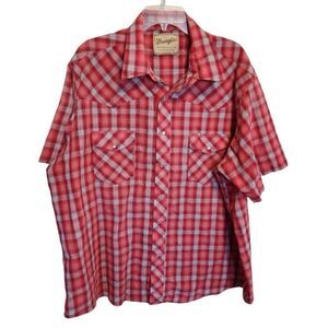 Wrangler- Mens 2XL Red Plaid Short Sleeve Pearl Snap Western Casual Shirt