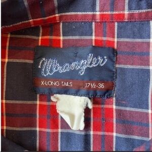 Wrangler Mens 2XLT Vintage 80’s Red and Blue Plaid Western Long Sleeve Shirt
