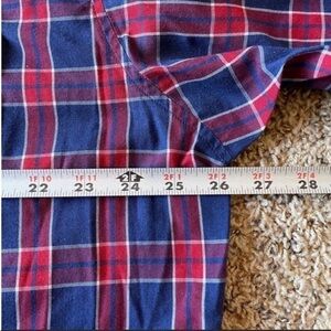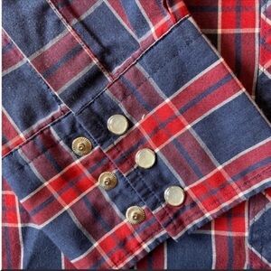 Size 2XLT AMAZING Red and Blue Plaid Print with Iconic Pearl Snap Buttons in EXCELLENT CONDITION, no rips or stains.