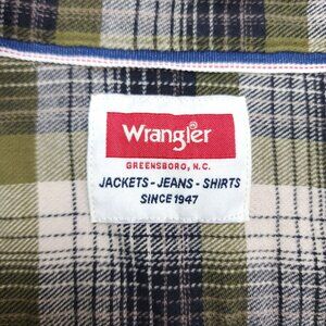 This Wrangler shirt offers a blend of comfort and style, featuring a classic plaid pattern. Its long sleeves and button-up design make it suitable for casual wear.